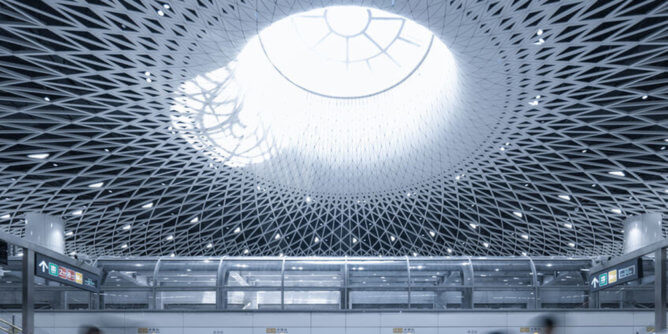 A true urban garden, the station is located between the large park of the sixth ring road to the east and the central green space to the west, aligning itself with the area’s main ecological axis. The seven floating sails rise above this green axis, shading a fluid urban park, both indoor and outdoor, which brings a rich and multidimensional public space to life.