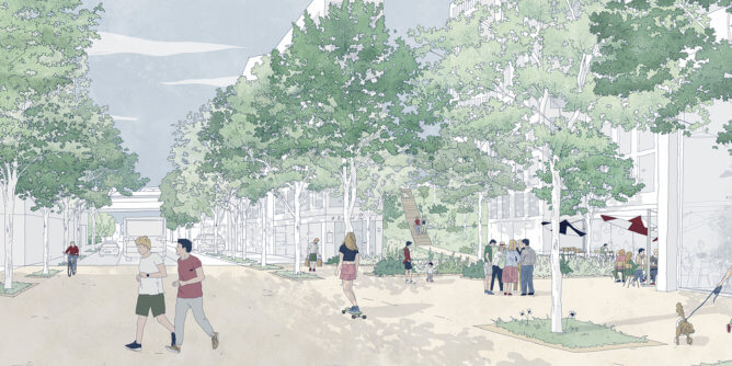 Le projet du PEM de Melun s’inscrit dans la démarche EMC2B d’Arep, permettant d’aménager des espaces apaisés, végétalisés et sobres au service de la décarbonation des mobilités.